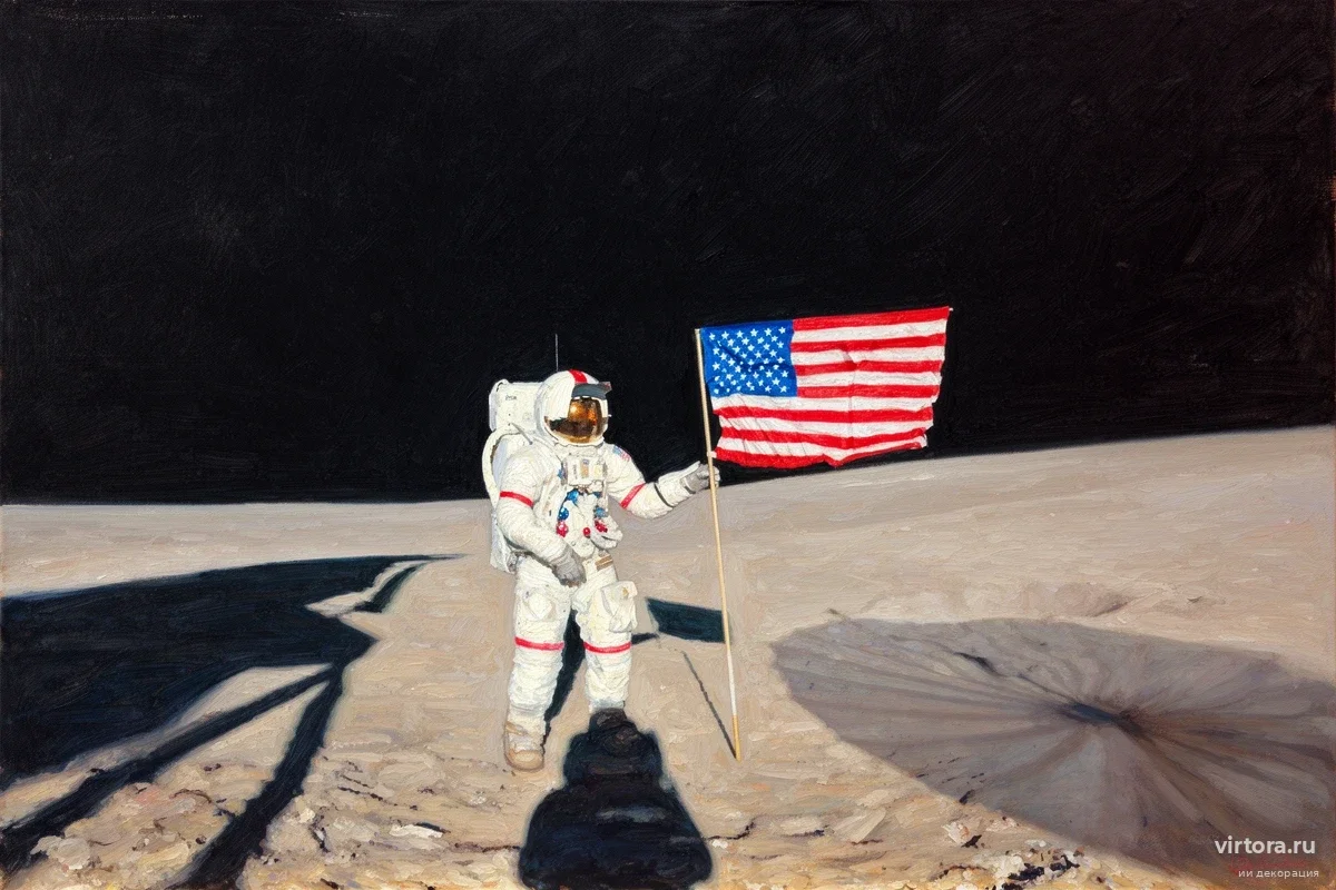 Воздуха на Луне нет, поэтому инженеры снабдили флагшток специальной горизонтальной перекладиной — без неё ткань просто повисла бы вдоль древка. Когда астронавты вбивали опору в реголит, возникла вибрация. В вакууме нет сопротивления среды, поэтому такие колебания затухают гораздо дольше, чем мы привыкли видеть на Земле. Именно эта инерция создает иллюзию развевающегося на ветру знамени.